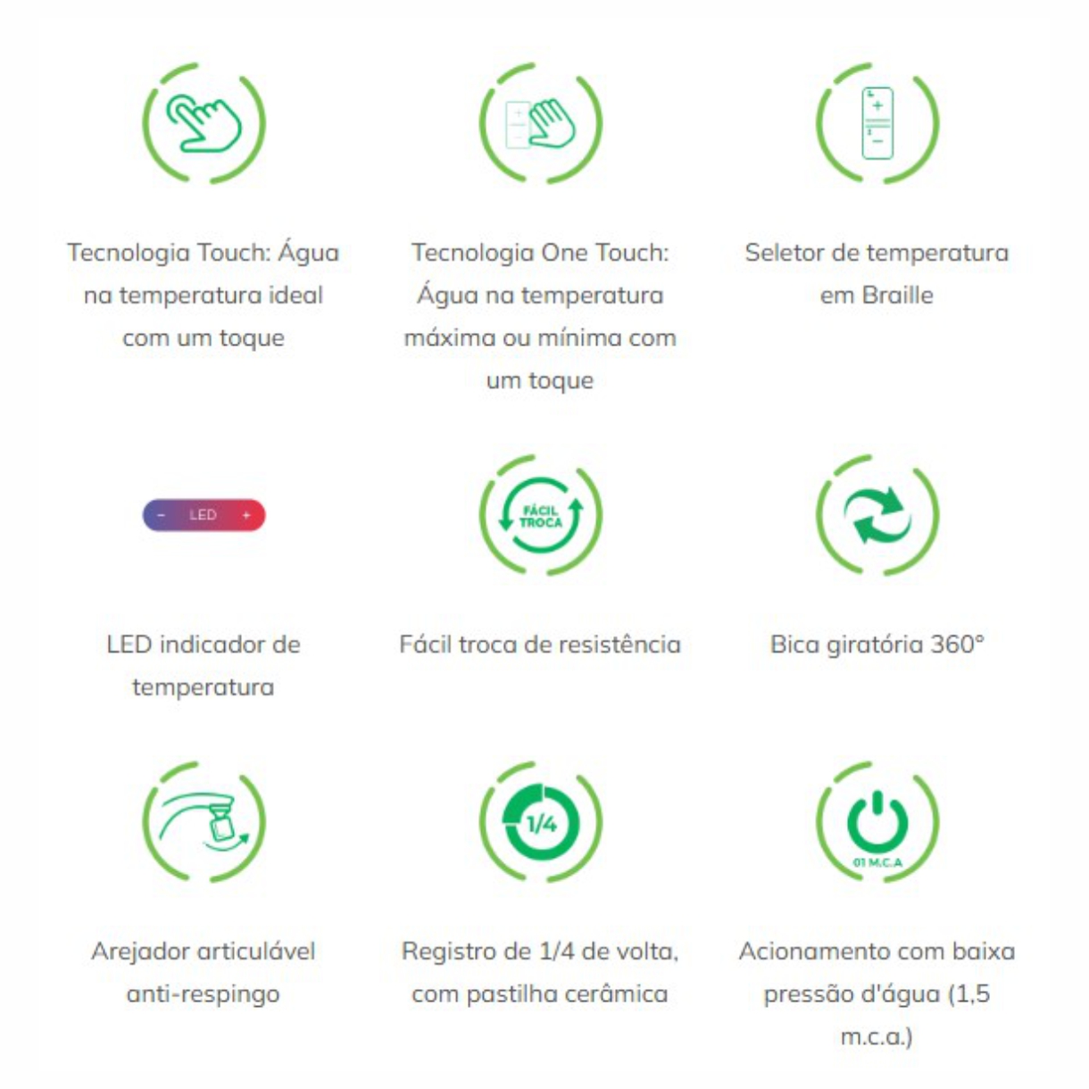 Água quente instantânea com Tecnologia One Touch